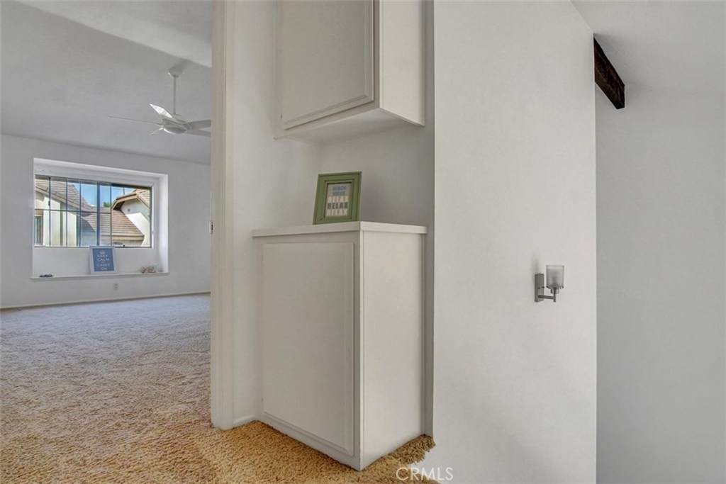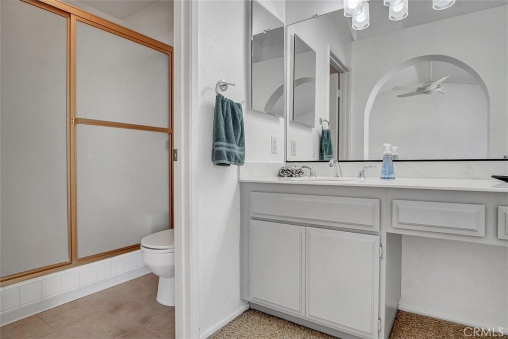 Fountain Valley's Finest. It doesn't get much better than this amazing home. From the moment you enter you will be pleasantly surprised by all of the natural sunlight that pours in from the floor to ceiling windows and you will be awed by the soaring ceilings. The tiled entry leads to a spacious open living room with a cozy painted brick fireplace and an adjacent formal dining room perfect for entertaining. The open kitchen has tiled counter tops and floors with newly painted cabinets and handles. Through the slider off the dining room you will enter the patio which makes a perfect outdoor living area. Both bedrooms are upstairs and have high cathedral ceilings with fans. They both are spacious and have have their own private bathrooms with newly painted vanities. The master bedroom has a walk-in closet and another separate closet with mirrored doors. It also features a charming window seat. There is a brand new A/C unit. All the light fixtures though out are modern and new. The downstairs half bath has a newly painted vanity. Some of the interior walls have new paint. The many windows have Hunter Douglas custom Silhouettes. The attached two car garage has plenty of storage cabinets. Interior tract location. Enjoy all that the Shadow Lane community has to offer. An inviting pool and spa adjacent to lush greenbelts, trails, neighboring parks and award winning schools. Conveniently located to shopping, restaurants, and freeway access.
