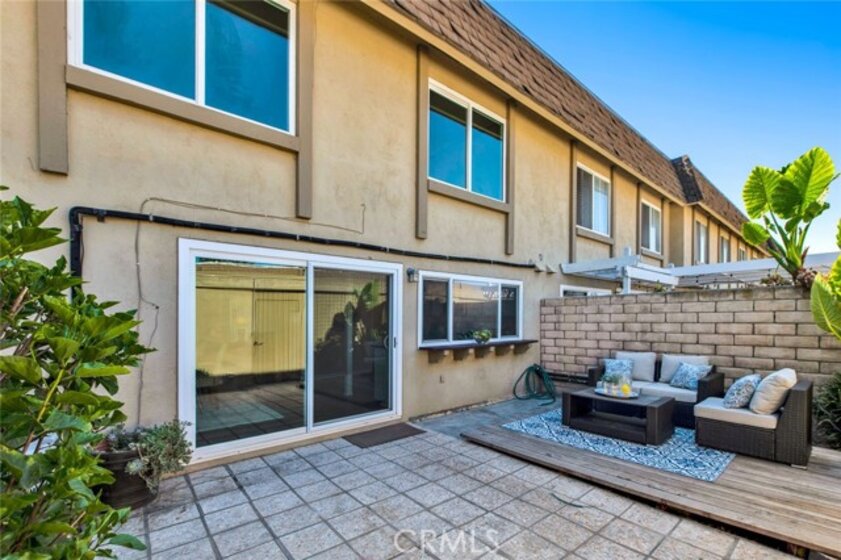 Follow the winding tree lined road into the Tiburon South community, and tucked behind one of the swimming areas is the courtyard that is home to this 3 bedroom, 2.5 bathroom townhome. Enter the east facing red door to the living room and follow the plank flooring past the half bathroom to the kitchen. The adjoining space can be a dining room or family room, whichever fits your needs. The kitchen boasts granite counter tops, stainless steel appliances & sink, a flat top ceramic range and a walk in pantry. It looks out to a patio with a wood deck that leads to the 2-car garage with washer & dryer hook ups. Venture upstairs to the 3 bedrooms, including a large primary suite with new carpet and a remodeled bathroom with a newer cabinet, Corian counter top, and tile shower. The full bathroom has also been remodeled with a newer cabinet, granite counter, and porcelain tile flooring. The systems have been upgraded, including a newer water heater and air conditioning unit. Tiburon offers its residents 5 pool areas, 2 clubhouses, lawns, courtyards, mature trees, and 2 tot lots. Even though residents feel like they live in a park like forest, they are close to hospitals, shopping, restaurants, golf courses, and Mile Square Park...and about 5 miles from the beach. All this and award winning Fountain Valley School District. Welcome home.
